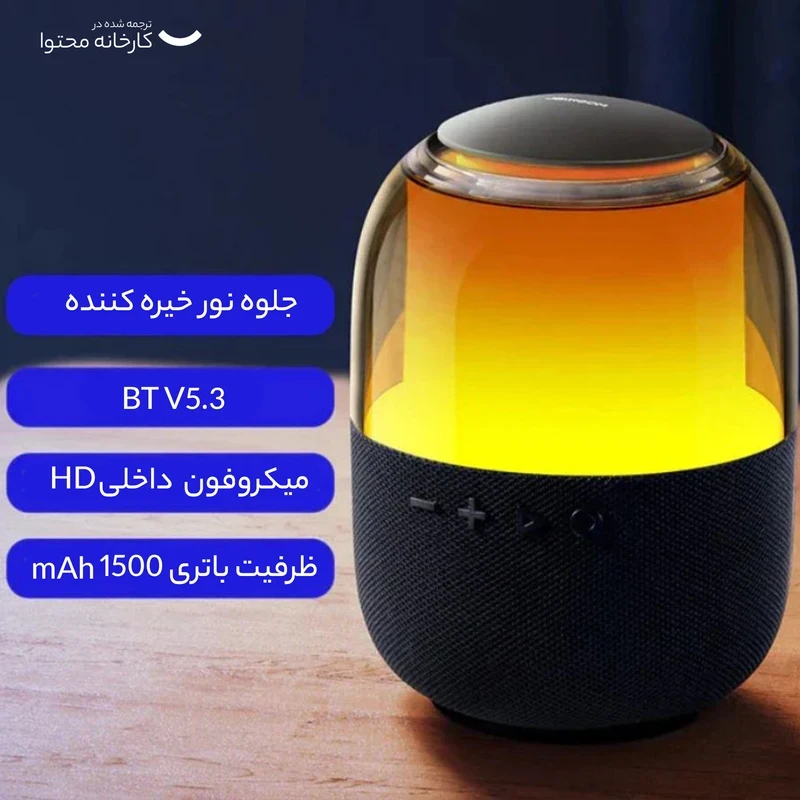 نور پردازی بصورت RGB با قابلیت تغییر به ۴ رنگ نوری پخش صدا بصورت ۳۶۰ درجه