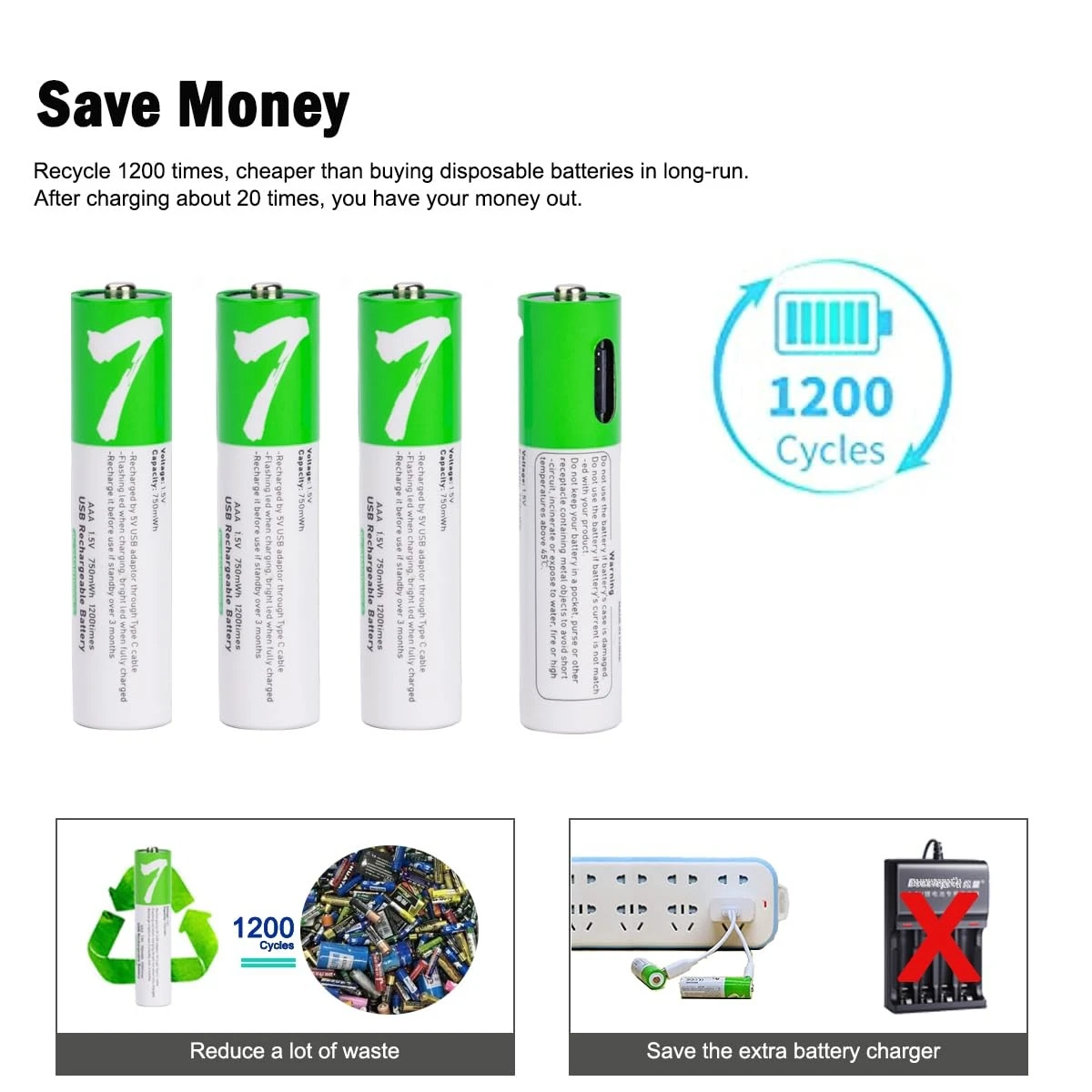• جابجایی به شارژ مجدد: از هدر دادن پول در باتری های AAA استاندارد قلیایی خودداری کنید! برای همان عملکرد عالی، به باتریهای لیتیومی قابل شارژ ما بروید. بارها و بارها از باتری ها استفاده مجدد کنید. دوستدار محیط زیست و مقرون به صرفه تر باشید