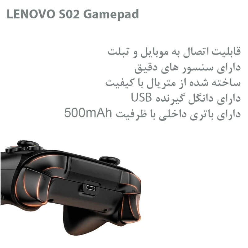 دسته بازی مدل S02 از برند Lenovo یک گیم پد به روز و حرفه ای است که با دارا بودن متریال بسیار با کیفیت و سنسور های دقیق ، خود را از سایر محصولات مشابه در بازار دنیا متمایز نموده است. این دسته دارای بلوتوث بوده و قابلیت اتصال به تبلت ، موبایل و ... را نیز دارد. همچنین دانگل گیرنده USB نیز داخل بسته بندی قرار گرفته است