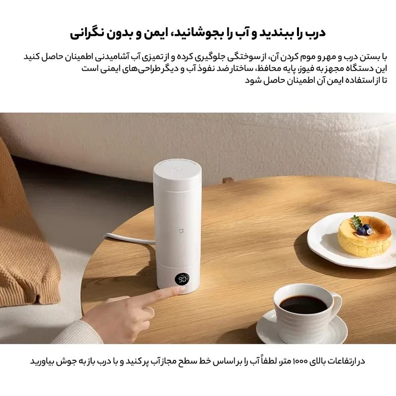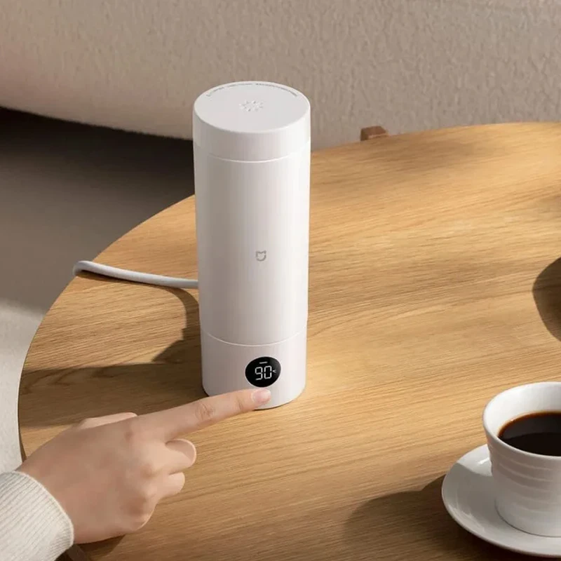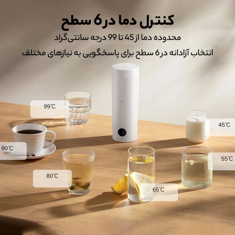 اگر طبیعتگرد هستید، به نوشیدنیهای گرم علاقه دارید یا به واسطه شغلتان ساعات طولانی را خارج از خانه میگذرانید، فلاسک برقی یک پیشنهاد ایدهآل برای شما است. برای عاشقان چای، این محصول مثل یک همراه خوشمشرب همه جا در دسترس بوده و به لطف تکنولوژی پیشرفتهاش، دغدغه تنظیم دما هم ندارد. شیائومی و میجیا این محصول را به عنوان کتری برقی پرتابل میفروشد که با 6 تنظیم دما، حتی قابلیت دمآوری هم دارد. اگر به دنبال یک فلاسک درجهدار یا کتری برقی پرتابل هستید، فلاسک برقی MJDRB02PL با ظرفیت 350 میلی لیتر، یک پیشنهاد وسوسهکننده برای شما است. در ادامه، به نقد و بررسی این محصول میپردازیم: طراحی فلاسک برقی Cup 2 MJDRB02PL، طراحی دوکاره است. یعنی به جز فلاسک حرارتی برای نوشیدنیهای گرم، میتواند در روزهای گرم تابستان با آب خنک در کنار شما باشد. سبک و کمجا است و با مخزن 350 میلی لیتری، کاربرد تک نفره دارد. این فلاسک شیائومی و میجیا پرتابل است، اما بیسیم نیست. یعنی ابعاد و طراحی مناسبی برای حمل روزانه دارد، ولی اگر بخواهیم از قابلیت گرمکننده آن استفاده کنید، باید فلاسک را به نزدیکترین پریز برق برسانید. بعد از اتصال به برق، نمایشگر دایرهای پایین دستگاه دما را نشان میدهد. مخزن داخلی فلاسک از استیل 316 پوشیده شده و یکبهیک استانداردهای سلامتی را پشت سر گذاشته است. زنگ نمیزند، راحت شسته میشود، طعم مایعات را تغییر نمیدهد و هیچ ماده مضری به نوشیدنی شما اضافه نخواهد کرد. اگر در ارتفاع کمتر از 1000 متر هستید، برای جوش آوردن باید درب فلاسک را ببندید اگر در ارتفاع بیشتر از 1000 متر هستید، برای جوش آوردن باید درب فلاسک را بردارید فلاسک برقی شیائومی MJDRB02PL فلاسکی فراتر از یک عایق گرما است. این فلاسک قابلیت تنظیم دما در 6 سطح را دارد تا آب را جوش آورید یا نوشیدنی خود را در حالت دمآوری قرار دهید. دم کردن قهوه و چای، آماده کردن شیرخشک نوزادان، آماده کردن پودر پروتئین ورزشکاران یا ترکیب دلچسب دمنوشها با این فلاسک انجامشدنی است. 40 درجه: برای تهیه شیر خشک نوزادان و حل کردن عسل در آب 55 درجه: درجه مناسب برای نوشیدن چای، دمنوش، قهوه و… 65 درجه: مناسب برای گرم کردن نوشیدنی سرد شده 80 درجه: درجه مناسب برای دم آوری 90 درجه: مناسب برای عصارهگیری از دمنوشها 99 درجه: دما جوش آوری می باشد