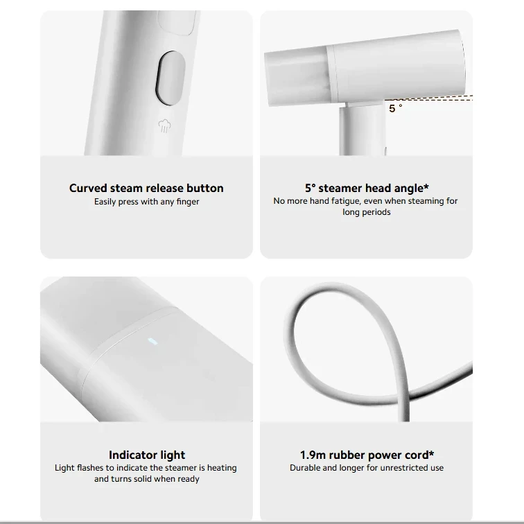 اتو بخار دستی شیائومی مدل Xiaomi Mijia Garment Steamer MJGTJ02LF یکی از محصولات جدید شرکت شیائومی بوده که به شما این امکان را میدهد که به راحتی و در هر مکانی چین و چروک های لباس های خود را از بین ببرید. با ویژگی هایی از جمله صفحه سرامیکی برای پخش یکنواخت حرارت، بخار بالا، و قابلیت استفاده بر روی لباس های آویزان، قابلیت تا شدن و امکان حمل راحت تر، تجربهای بینظیر از اتوکشی را برای شما فراهم میکند. توان بالاتر، وزن کمتر، زمان کوتاه تر جهت آماده سازی دستگاه، دسته تاشو و حمل راحت تراز مزیت های این مدل در قیاس با نسل قبلی این دستگاه می باشد. اتو بخار دستی شیائومی با طراحی مدرن و کارآمد خود، یک انتخاب عالی برای کسانی است که به دنبال یک دستگاه قابل حمل و کارآمد برای از بین بردن چین و چروک لباس های خود هستند. این دستگاه در حالت باز دارای ابعاد 172.5 × 92 × 237 میلی متر و در حالت تا شده دارای ابعاد 243 × 92 × 108 میلی متر است. این طراحی جمع و جور به شما امکان می دهد که دستگاه را به راحتی حتی در مسافرت ها حمل و نگهداری کنید. بدنه اتو بخار شیائومی از آلومینیوم با پوشش سرامیکی ساخته شده است که توزیع یکنواخت حرارت را تضمین میکند. این دستگاه دارای یک دکمه بخار منحنی است که به راحتی قابل فشار دادن است. این طراحی ارگونومیک باعث می شود که حتی در استفاده طولانی مدت نیز دست شما خسته نشود. این دستگاه دارای یک سیم برق 1.9 متری است که به شما امکان می دهد در یک محدوده وسیع تر از آن استفاده کنید. این دستگاه برای انواع مختلف پارچه ها از جمله پنبه، کتان، پشم، ابریشم، پلیاستر و نایلون مناسب است. اتو بخار دستی شیائومی با قابلیت گرم شدن سریع، تنها در کمتر از 26 ثانیه آماده استفاده می شود. این دستگاه به شما امکان می دهد که لباس های خود را به صورت عمودی و افقی اتو کشی کنید. این ویژگی به خصوص برای لباس های بزرگ و یا لباس هایی که به راحتی نمی توان آن ها را روی تخته اتو قرار داد، بسیار مفید است. برای جلوگیری از تجمع مواد معدنی در دستگاه، از آب تصفیه شده استفاده کنید. از اعمال بخار مستقیم روی دکمه ها یا زیپ ها خودداری کنید.