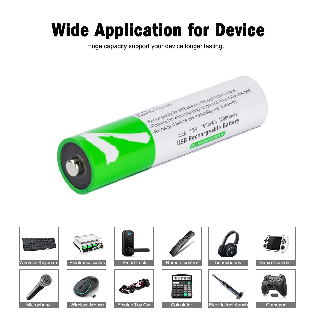 1.5SMARTOOOLS ولت AA 2600 مگاوات ساعت باتری لیتیوم یون قابل شارژ USB برای کنترل از راه دور ماوس بی سیم اسباب بازی + شارژر کابلی TYPE_C