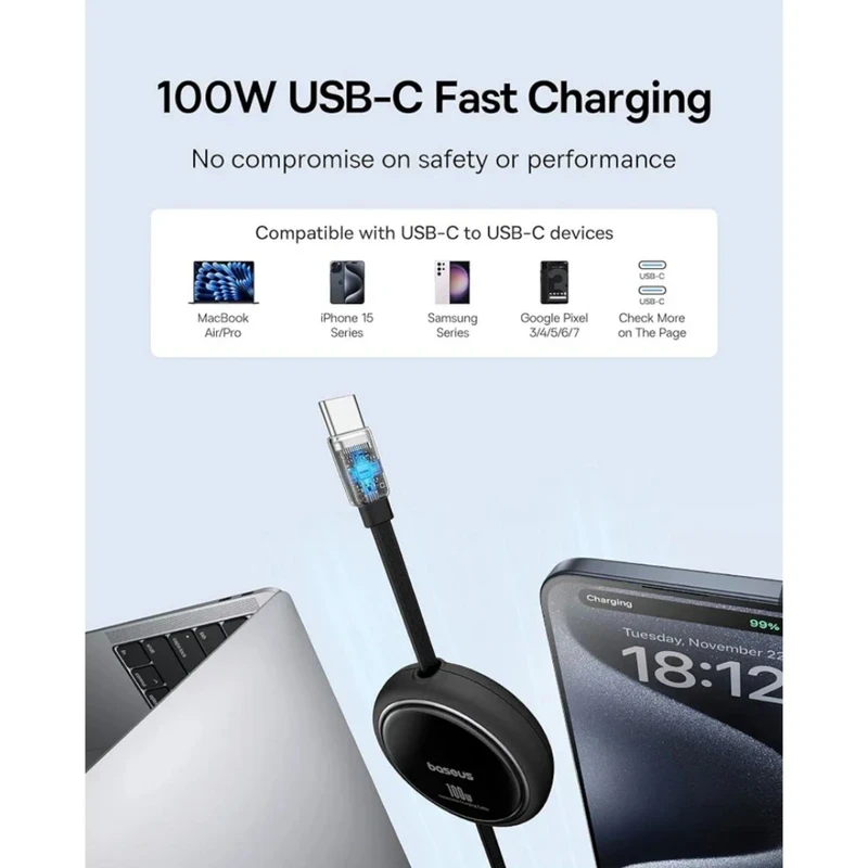 کابل Baseus Free2Draw مدل CB000062 یک کابل 1 متری با دو کانکتور USB-C است که می تواند در یک محفظه راحت جمع شود و باعث صرفه جویی در وقت کاربر و باز کردن سیم های ناامیدی شود. علاوه بر این، شارژ سریع با توان 100 وات را امکان پذیر می کند - فقط 2.5 ساعت برای شارژ کامل یک نینتندو سوییچ، 2.4 ساعت برای iPad Pro 11، و فقط 2 ساعت برای MacBook Pro 16 طول می کشد. اندازه کوچک محفظه کابل باعث می شود آن را شارژ کنید. حمل و نقل فوق العاده آسان، جا دادن در جیب، کیف یا کوله پشتی. شارژ سریع 100 واتی PD: کابل Baseus Free2Draw از فناوری Power Delivery (PD) در 100 وات پشتیبانی می کند و شارژ بسیار سریع دستگاه های شما را تضمین می کند. شارژ کامل یک نینتندو سوییچ تنها 2.5 ساعت، آیپد پرو 11 اینچی در 2.4 ساعت و مک بوک پرو 16 تنها در 2 ساعت طول می کشد. این ویژگی برای افرادی که در حال حرکت هستند و زمانی برای منتظر ماندن برای شارژ شدن دستگاه خود ندارند بسیار مهم است. مکانیزم جمع شدنی راحت: محفظه جمع شونده منحصر به فرد به طور قابل توجهی قابلیت استفاده کابل را بهبود می بخشد و از گره خوردن و آسیب جلوگیری می کند. به لطف این راه حل، کابل همیشه مرتب و آماده برای استفاده می ماند، که به ویژه برای کسانی که مرتباً آن را در حال حرکت می برند بسیار مهم است. اندازه فشرده: ابعاد محفظه کابل جمع و جور (قطر 60.7 میلی متر و ارتفاع 28.8 میلی متر) حمل و نقل آن را فوق العاده آسان می کند. به راحتی می تواند در جیب شلوار، کیف پول یا کوله پشتی جا شود و در صورت نیاز همیشه در دسترس باشد. دوام و انعطاف پذیری: این کابل از مواد با کیفیت بالا ساخته شده است: PC و TPE، دوام و مقاومت آن در برابر آسیب را تضمین می کند. محفظه مشکی رنگ نه تنها به ظرافت می افزاید، بلکه از کابل در برابر عوامل خارجی نیز محافظت می کند. انتقال داده با سرعت بالا: Baseus Free2Draw سرعت انتقال داده تا 480 مگابیت در ثانیه را ارائه می دهد که آن را به ابزاری عالی برای انتقال سریع فایل بین دستگاه ها تبدیل می کند. این یک ویژگی ضروری برای حرفه ای ها و علاقه مندان به فناوری است که به کابل انتقال داده قابل اعتماد و کارآمد نیاز دارند.