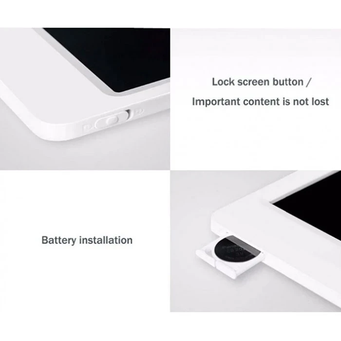 تخته سیاه دیجیتالی Xiaomi mijia یک وسیله جالب و کاربردی که میتواند برای تمامی سنین با توجه به نوع کارکرد مناسب باشد.این تخته سیاه دیجیتالی با جنس بدنه ABS/LCD ، وزن 345 گرمی، سایز 13.5 اینچی و بدنه باریک 7 میلیمتری که دارد کاملا سبک به حساب می آید و میتواند به راحتی تو کیف، سفر و جاهای دیگر با جای کمی که می گیرد بدون نگرانی از کمبود جا همراهتون باشد. این دستگاه صفحه نمایش پرقدرت و مصرف انرژی کم و قابلیت تعویض باتری را دارد . دارای قلم مغناطیسی و سبک مخصوص طراحی و نوشتن است و قابلیت تغییر ضخامت در 3 سایز با کم و زیاد کردن فشار به قلم و امکان اتصال به کنار دستگاه را دارا است .همچنین با دکمه ای که پایین دستگاه تعبیه شده میتوانید به راحتی کل صفحه را پاک و به حالت اول برگردانید و دکمه قفل شونده کنار دستگاه میتواند نگرانی شما را بابت اشتباه احتمالی و پاک شدن صفحه برطرف کند.