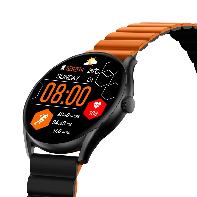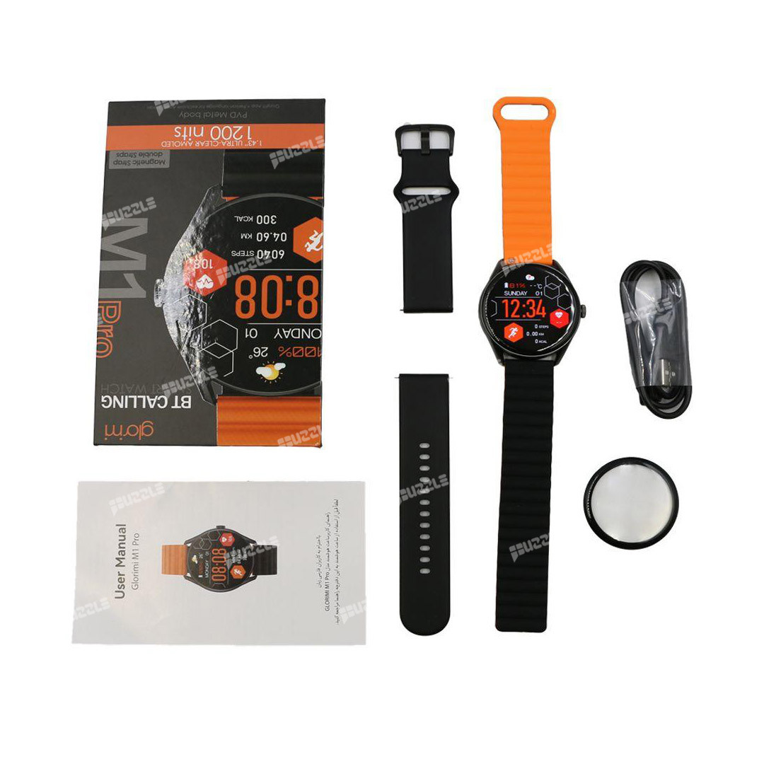 ساعت ، بند سیلیکونی مگنتی دو رنگ ، بند سیلیکونی اضافه ، گلس محافظ صفحه نمایش رایگان ، کابل شارژر مگنتی ، دفترچه راهنمای فارسی