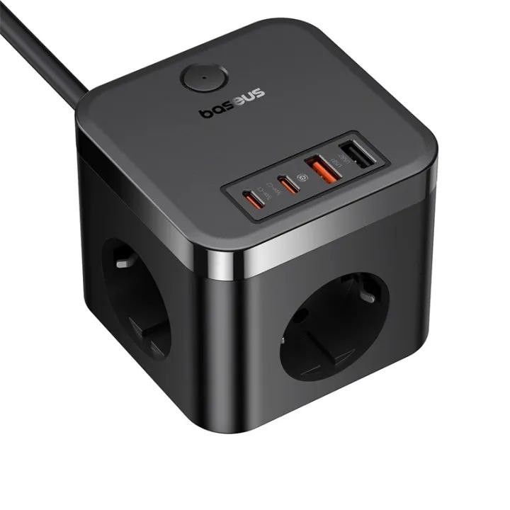 کالای اورجینال بیسوس، واردات انحصاری تیم تکنیک تل | حداکثر توان خروجی شارژ ۳۰ وات | دارای ۱۰ لایه محافظتی | نوع دوشاخه EU / ایرانی | دارای ۳ پریز برق + ۲ تایپ سی + ۲ USB